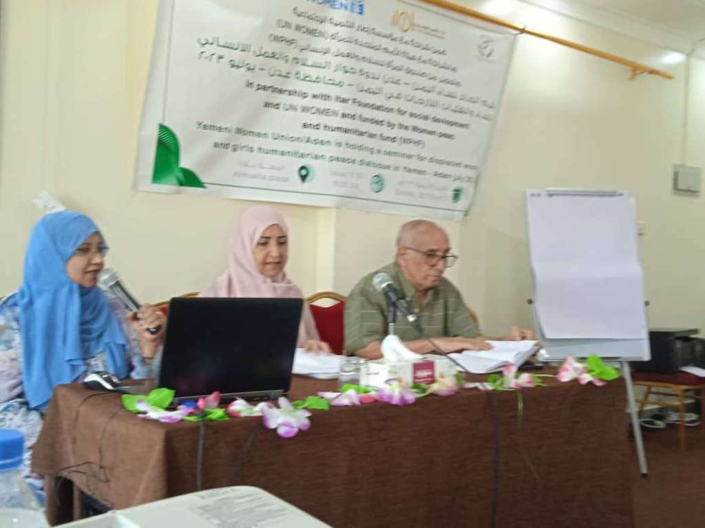 بتمويل من صندوق المرأة للسلام…..إتحاد نساء اليمن في عدن ينظم ندوة حوار السلام والعمل الإنساني للنساء والفتيات النازحات