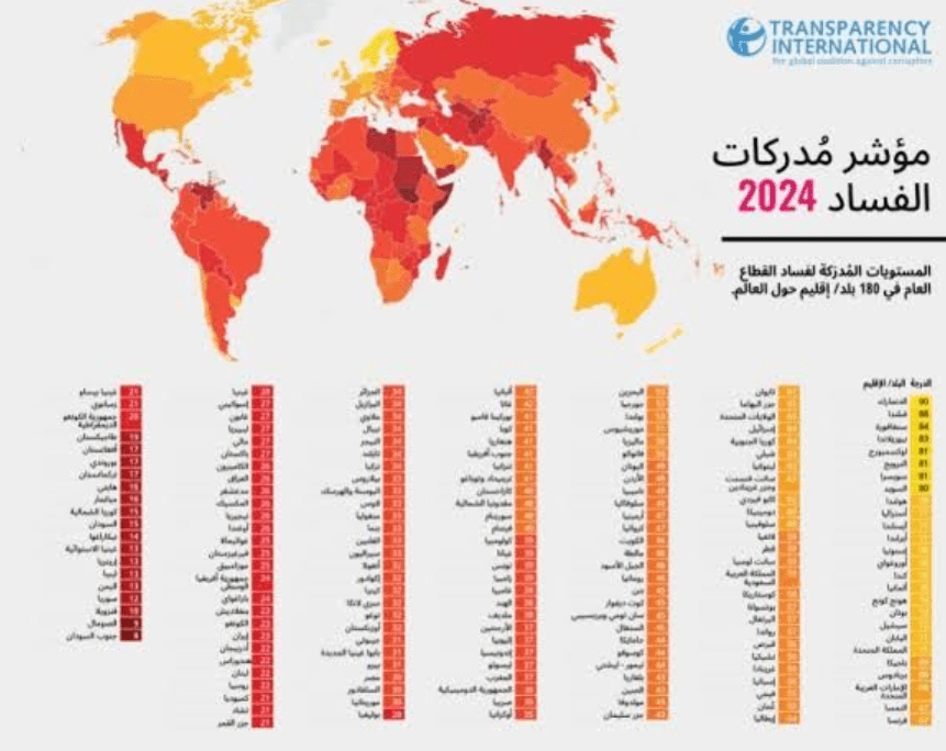 وبحسب التقرير وطبقاً لمؤشر مدركات الفساد (IPC) لعام 2024، والذي نشرته منظمة الشفافية الدولية، فإن الفساد يشكل تحدياً كبيراً في البلاد، التي قال إنها “تعاني من صراع مستمر منذ 10 سنوات وضعف في المؤسسات العامة”.