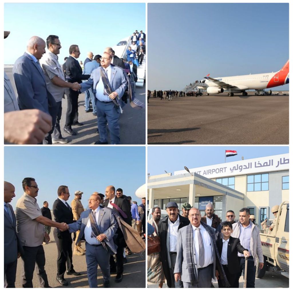 وكان في استقبال رئيس المجلس ومن معه لدى وصولهم مطار المخا الدولي، محافظُ تعز نبيل شمسان، ونائب رئيس المكتب السياسي للمقاومة الوطنية الشيخ ناصر باجيل، والأمين العام للمكتب السياسي الشيخ عبدالوهاب عامر، إلى جانب قيادات محلية وعسكرية وأمنية، ومشايخ، وشخصيات اجتماعية.