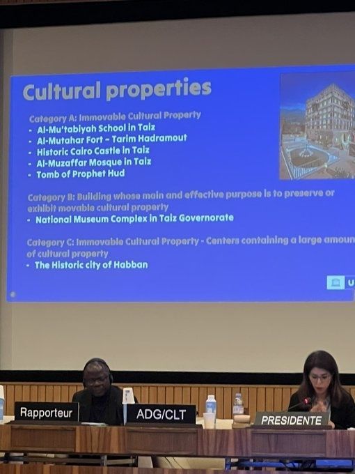أعلنت منظمة الأمم المتحدة للتربية والعلم والثقافة (اليونسكو) إدراج سبعة مواقع تراثية في اليمن ضمن قائمة الحماية المعززة، استناداً إلى البروتوكول الثاني لعام 1999 الملحق باتفاقية لاهاي 1954 الخاصة بحماية الممتلكات الثقافية أثناء النزاعات المسلحة.