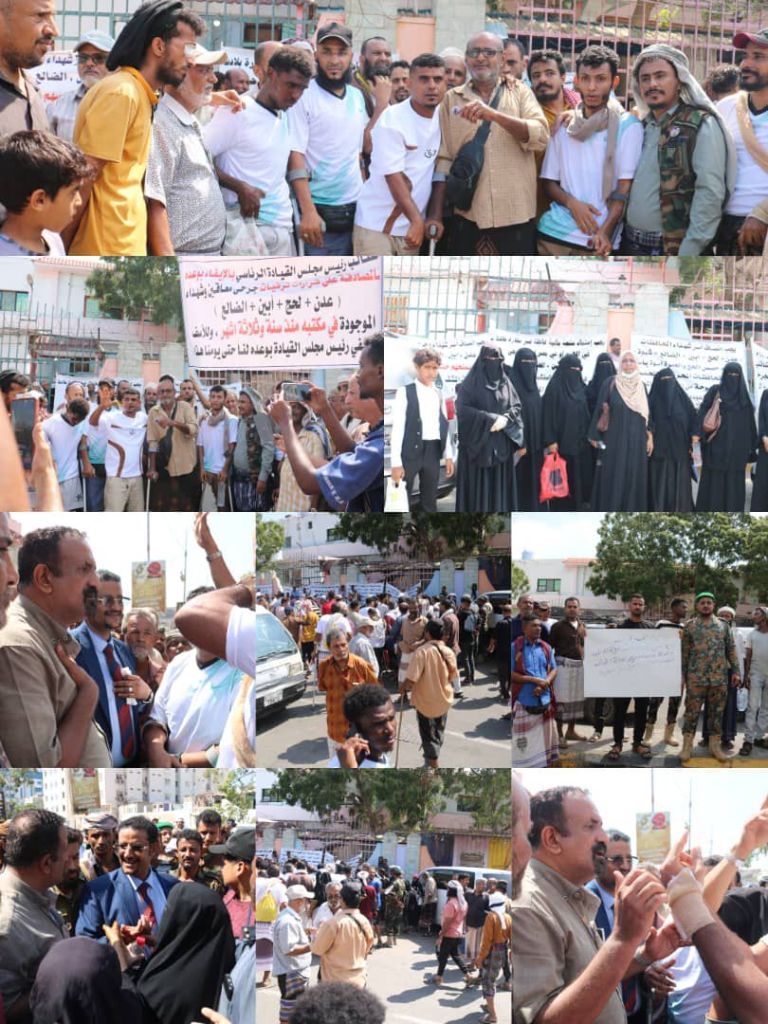 لجنة اعتصام الجرحى وأسر الشهداء تواصل احتجاجها أمام معاشيق بعدن للمطالبه بحقوقها